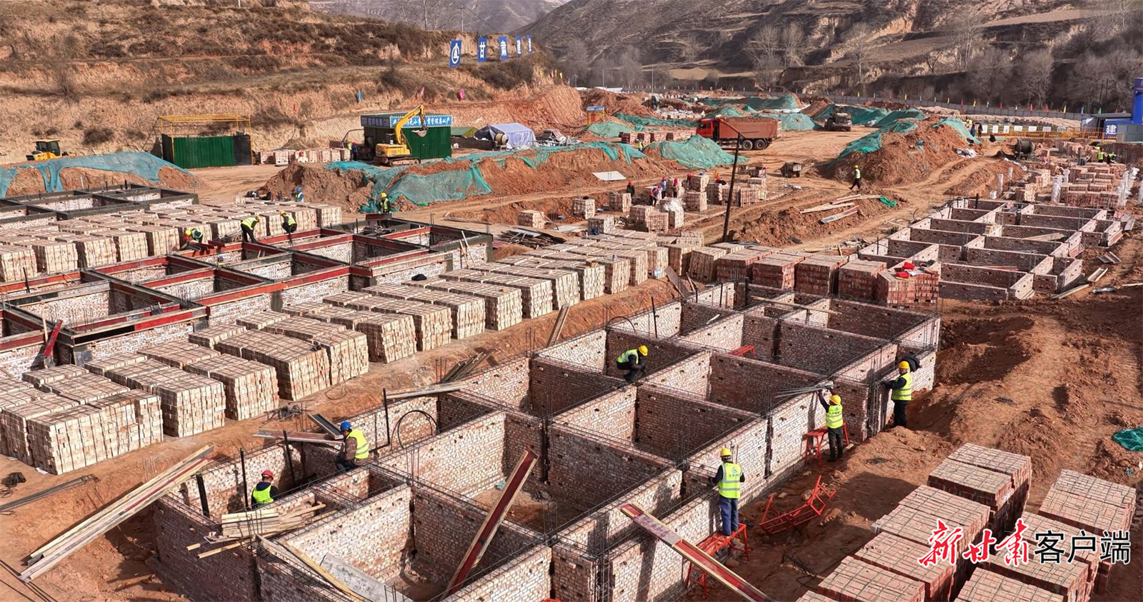 去年秋冬之交,天气渐寒,为了让受灾群众早日住上新居,承担建设任务的甘肃九建抢时间、赶进度,迅速组建党员突击队,全员奋战在施工一线,提前统筹订购建材。11月初,组织工人进场,在封冻前完成场地土方回填35000立方米、施工现场围挡860米、42户的条形基础浇筑和23户的基础砌体砌筑。