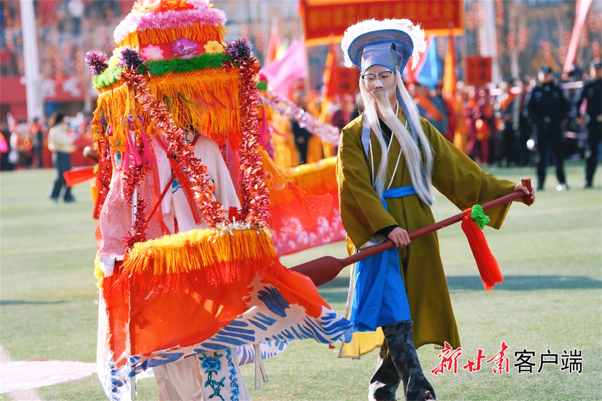 新甘肃客户端永登2月28日讯(新甘肃·甘肃日报记者 王煜宇)雄狮纳祥、高跷竞舞、太平鼓鸣……今天,春日的暖阳洒满庄浪河畔,永登县各乡镇社火队齐聚一堂,共赴2026年“欢欢喜喜过大年”非遗展演之约,惊艳亮相的非遗技艺、妙趣横生的民俗角色,轮番为群众献上了一场精彩纷呈的文化盛宴。