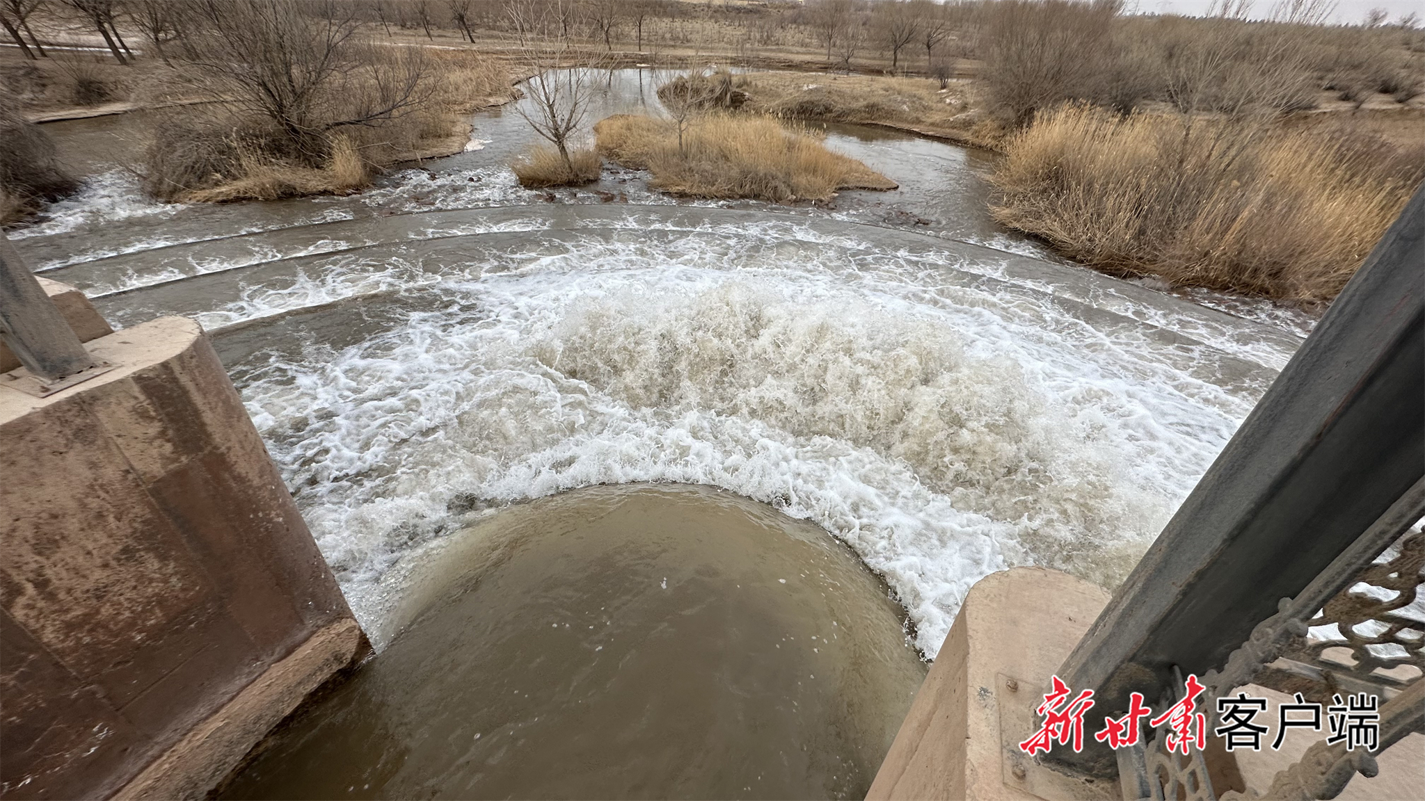 黄河水通过渡槽流向石羊河干流。本文图片均由新甘肃·甘肃日报记者 金奉乾摄