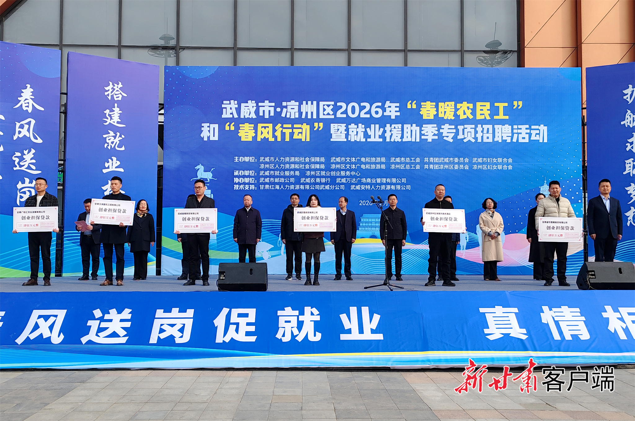 新甘肃客户端武威2月28日讯(新甘肃·甘肃日报记者 金奉乾)今天上午,武威市举行2026年“春暖农民工”和“春风行动”暨就业援助季专项招聘活动。为求职者和企业搭建精准对接平台,畅通就业渠道,帮助各类企业招工稳岗,助力城乡劳动力稳定就业增收。