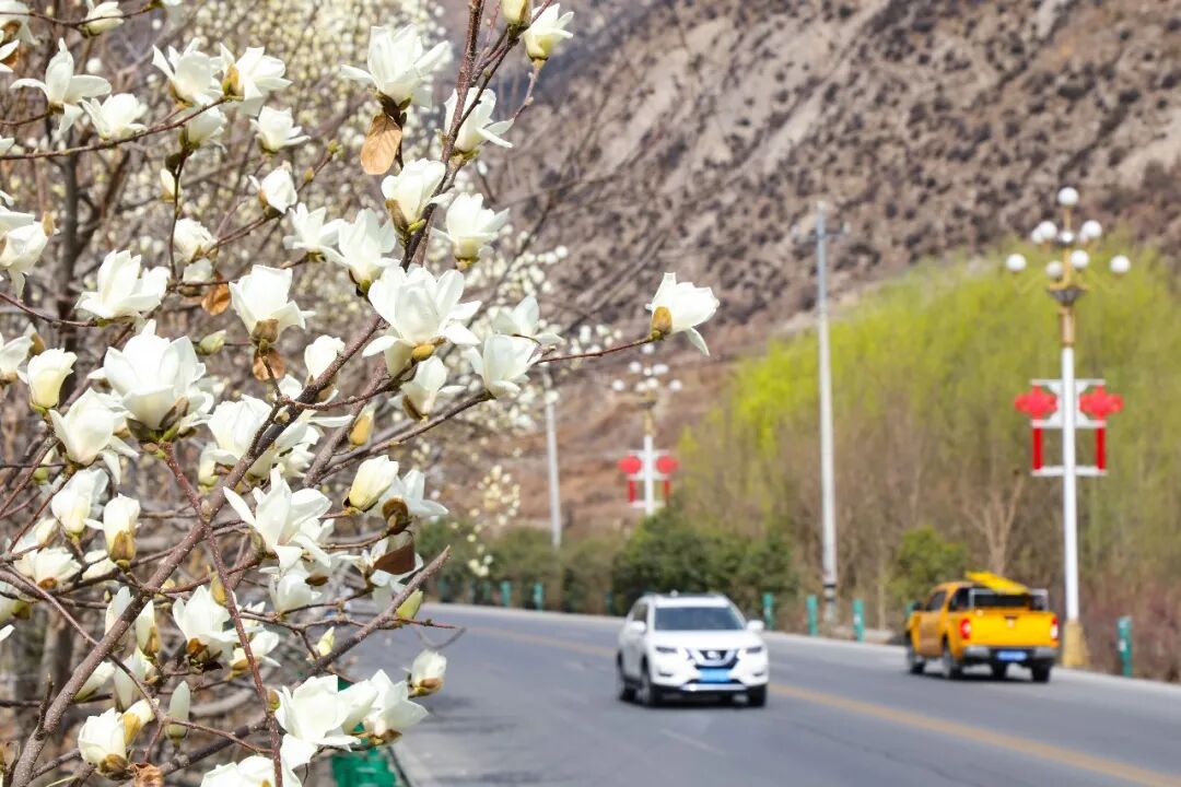 峰迭镇国道G345线两旁,春意同样动人。一排排白玉兰亭亭玉立,花苞饱满圆润,迎着春风悄然绽放,洁白素雅的花朵缀满枝头,宛如亭亭玉立的仙子。车辆穿行其间,道路与繁花相伴,成为春日里一道靓丽的风景线,既扮靓了城乡交通沿线,也让往来行人感受到扑面而来的春日气息。