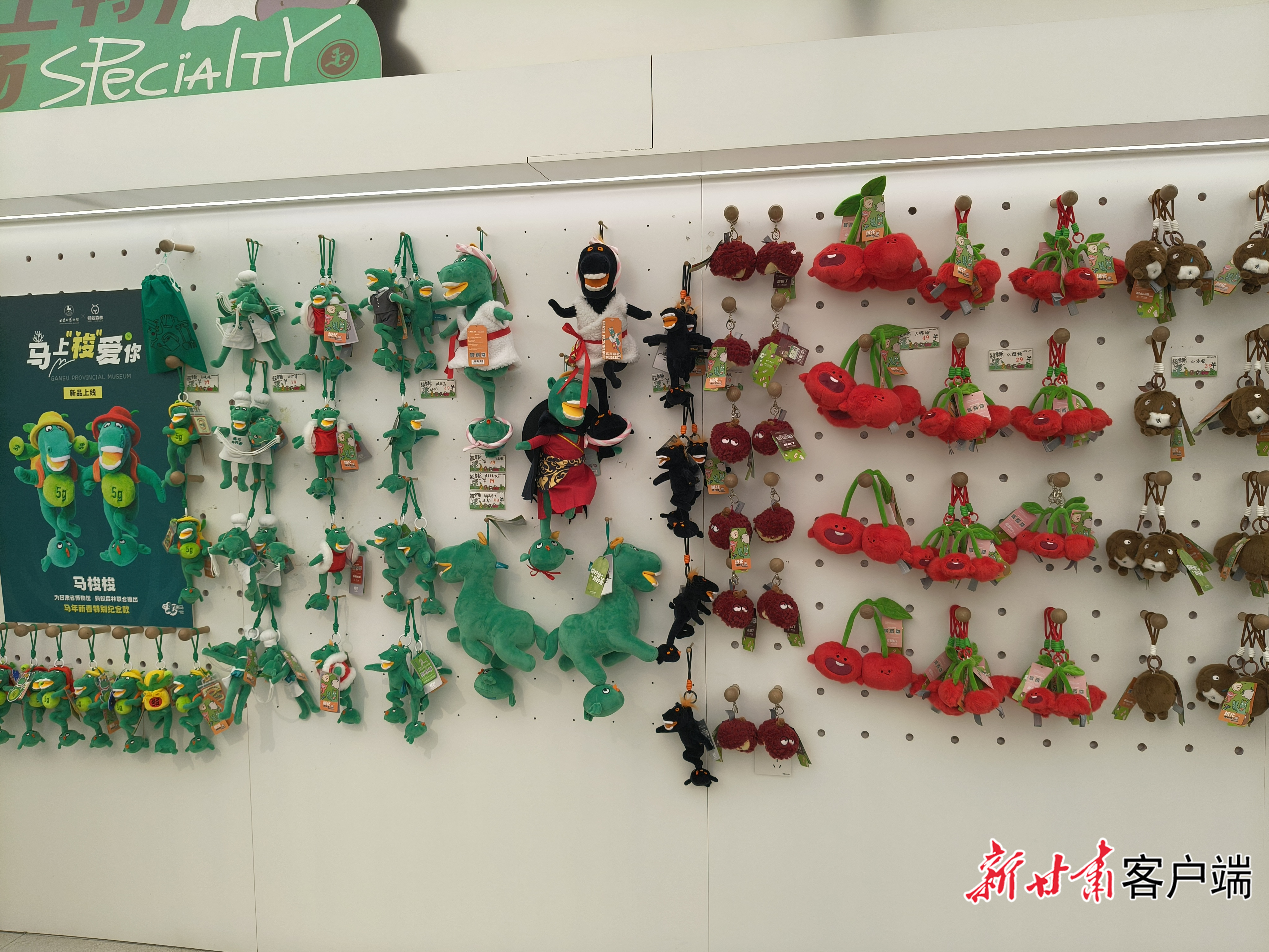走进甘肃省博物馆附近的文创生活馆,“绿马”、黄芪等以馆内文物及省内特产为原型设计的各类包挂、玩偶摆满了墙面,吸引许多消费者驻足挑选。