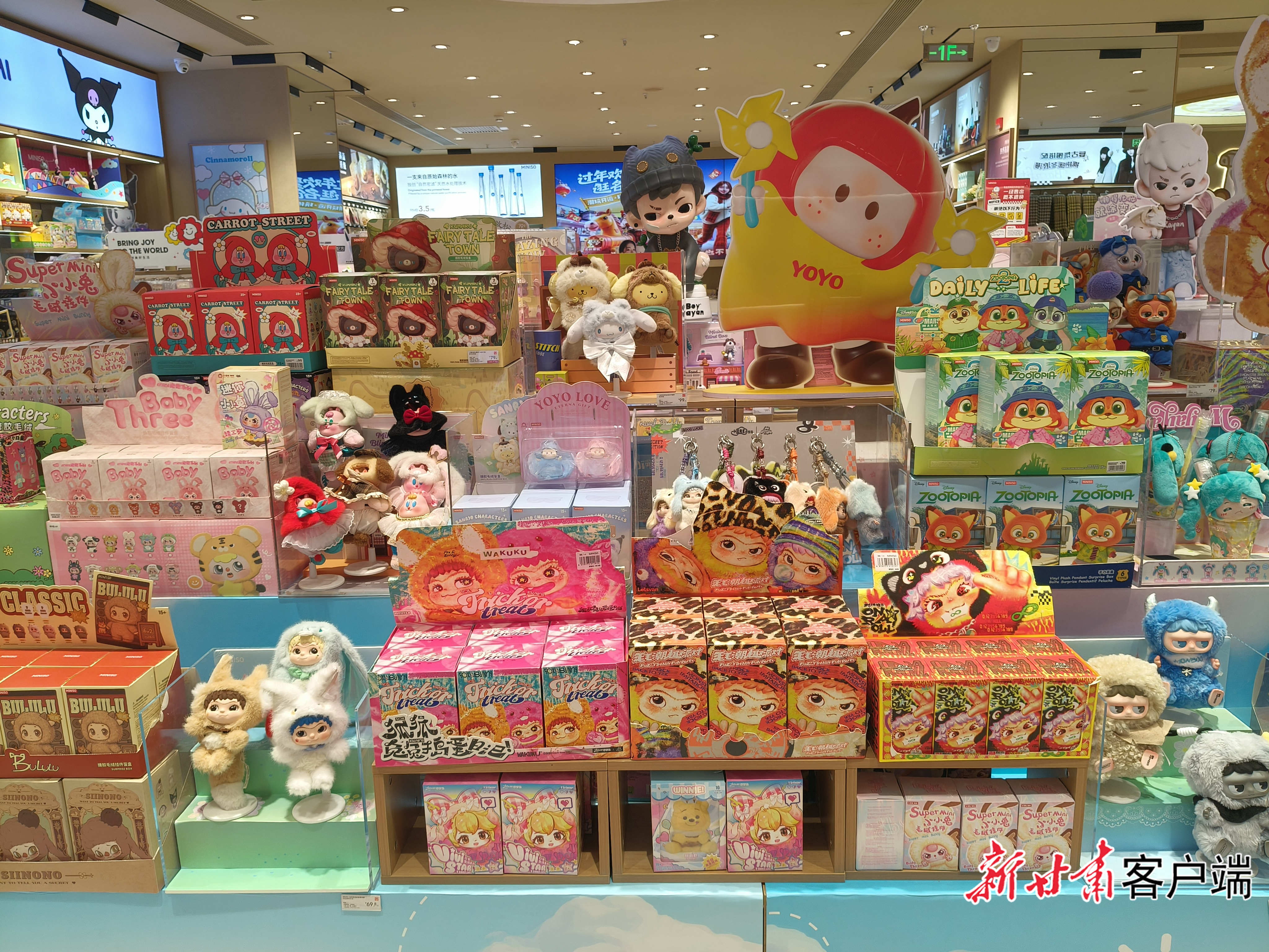 在兰州万象城的泡泡玛特门店,展柜内整齐摆放着多种盲盒、手办,LABUBU、星星人等热门IP一应俱全。