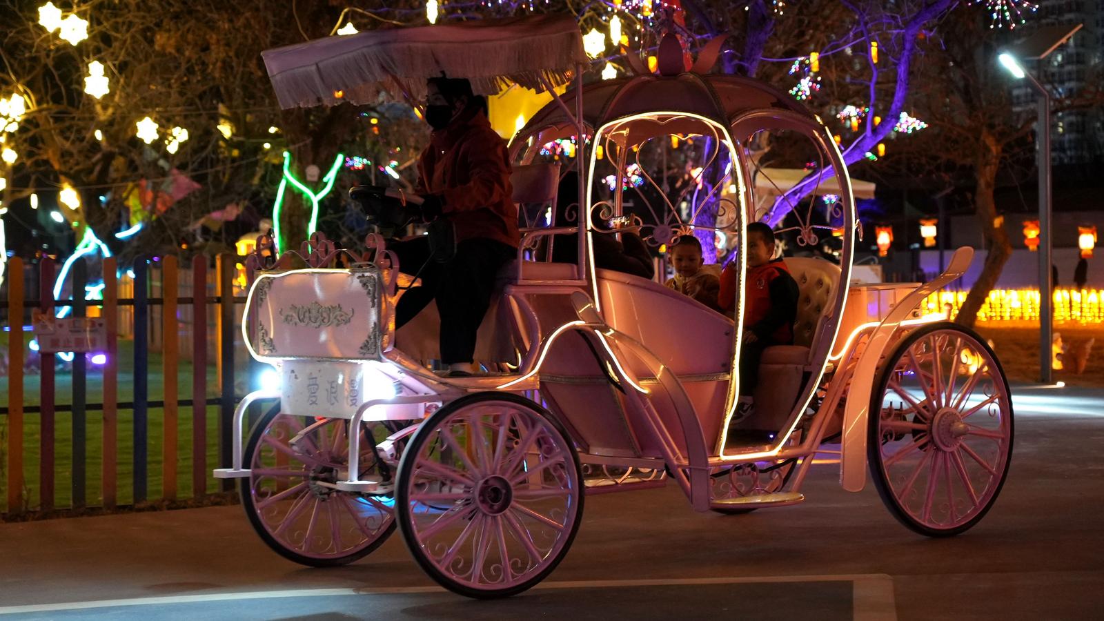 夜幕下,星河欢乐田园花灯璀璨夺目,千盏花灯次第绽放,与悬挂的一个个谜面交织成浪漫的画卷。灯谜竞猜区人头攒动,市民们或驻足凝思、或小声探讨,竞相破解涵盖文博知识与民俗趣味的谜题,在动脑闯关的乐趣中感受传统文化魅力。造型漂亮的花车巡游队伍缓缓前行,流光溢彩的花车与璀璨花灯相映成趣,引得小朋友们争先体验。