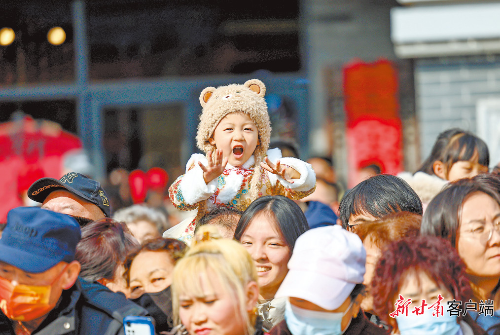 在兰州老街民俗演出现场,小朋友开心喝彩。新甘肃·甘肃日报通讯员 侯崇慧