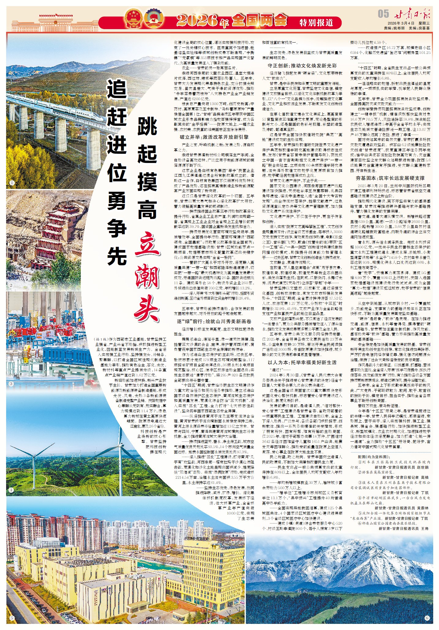 从综合实力快速跃升到产业发展升级焕新,从开放合作成果丰硕到民生福祉全面增进,甘肃正以昂扬姿态推动幸福美好新甘肃建设取得新成就。2025年,甘肃聚力建设“七地一屏一通道”,顶压前行、迎难而上,地区生产总值增长5.8%,增速居全国第2位,圆满完成“十四五”收官任务,推动幸福美好新甘肃建设取得新成就。