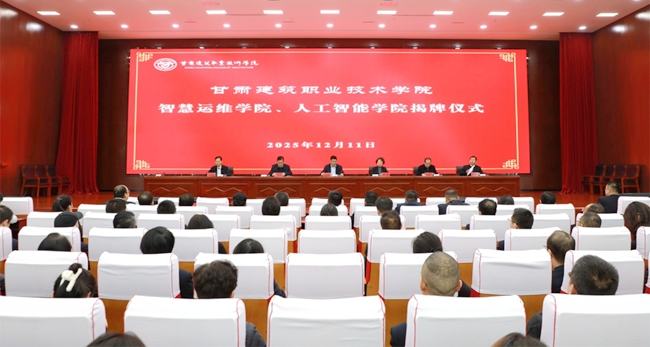 12月11日,甘肃建筑职业技术学院举行智慧运维学院、人工智能学院揭牌仪式暨2025年学校教师发展(培训)工作总结交流会。