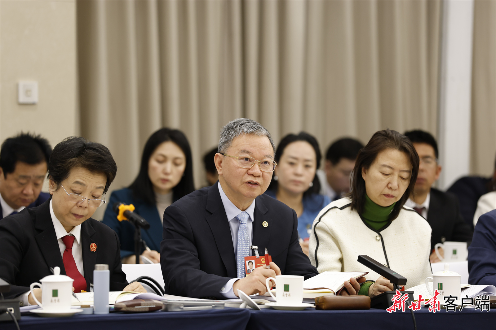 全国人大代表、中国科学院院士、兰州大学原校长严纯华(中)。新甘肃·甘肃日报记者孟捷摄