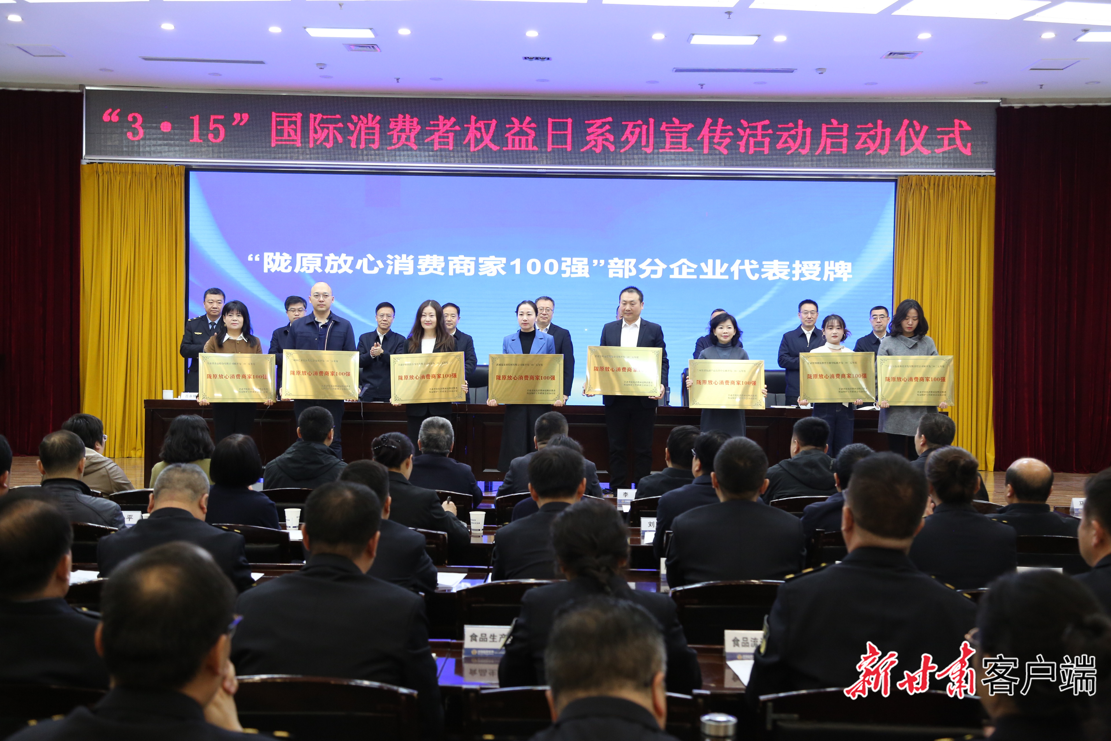 主办方为“陇原放心消费商家100强”部分企业代表授牌。