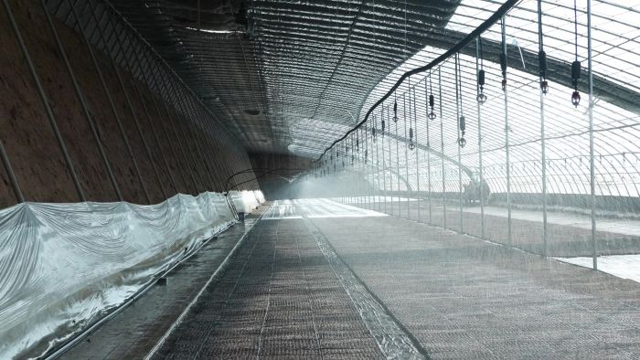 寺沟村村委会副主任、馨源菇瀚合作社负责人 李玉兴:我们今年合作社预计在2026年种植西兰花一万亩,第一批育苗在四座高温高效温室大棚内进行,定植是一千二百亩,截至今天西兰花苗已经下盘第三个大棚,一号棚的苗已经发芽露头。今年,我们花费40万元改造了高效喷灌系统,既能节水又能提高苗秧质量。