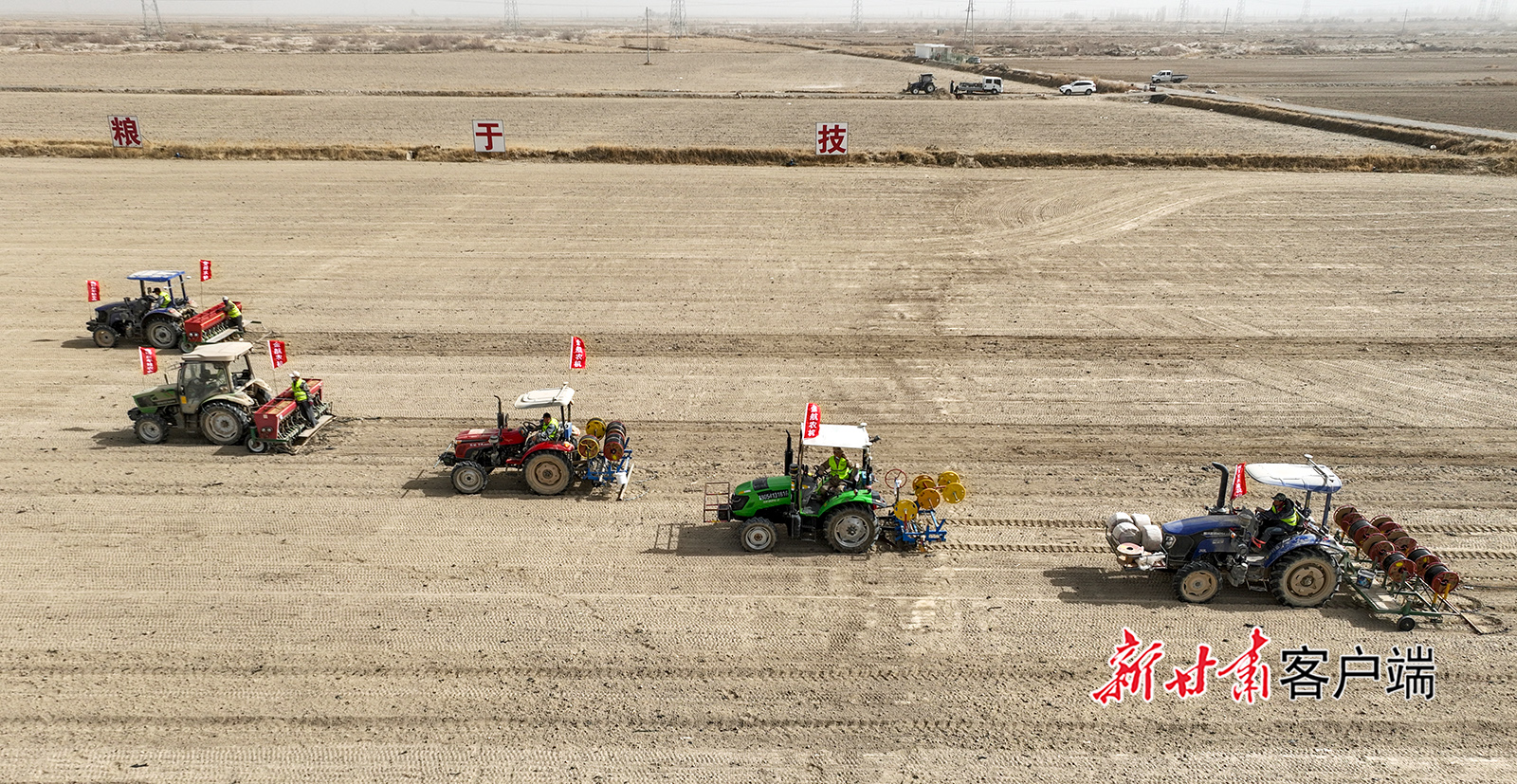 3月11日,在金塔县东坝镇小河口村万亩粮食种植基地,农机手驾驶农机播种小麦。目前,金塔县10万余亩小麦陆续开播,农户们抢抓气温回升、土壤墒情适宜的有利时机,全力以赴投入小麦播种工作。