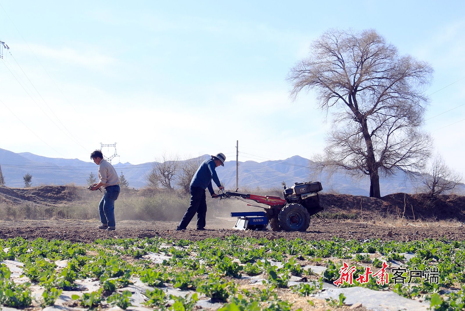 3月11日,岷县十里镇群众正在用农机进行耕地覆膜,为春耕春播作准备。新甘肃·甘肃日报通讯员 马万安