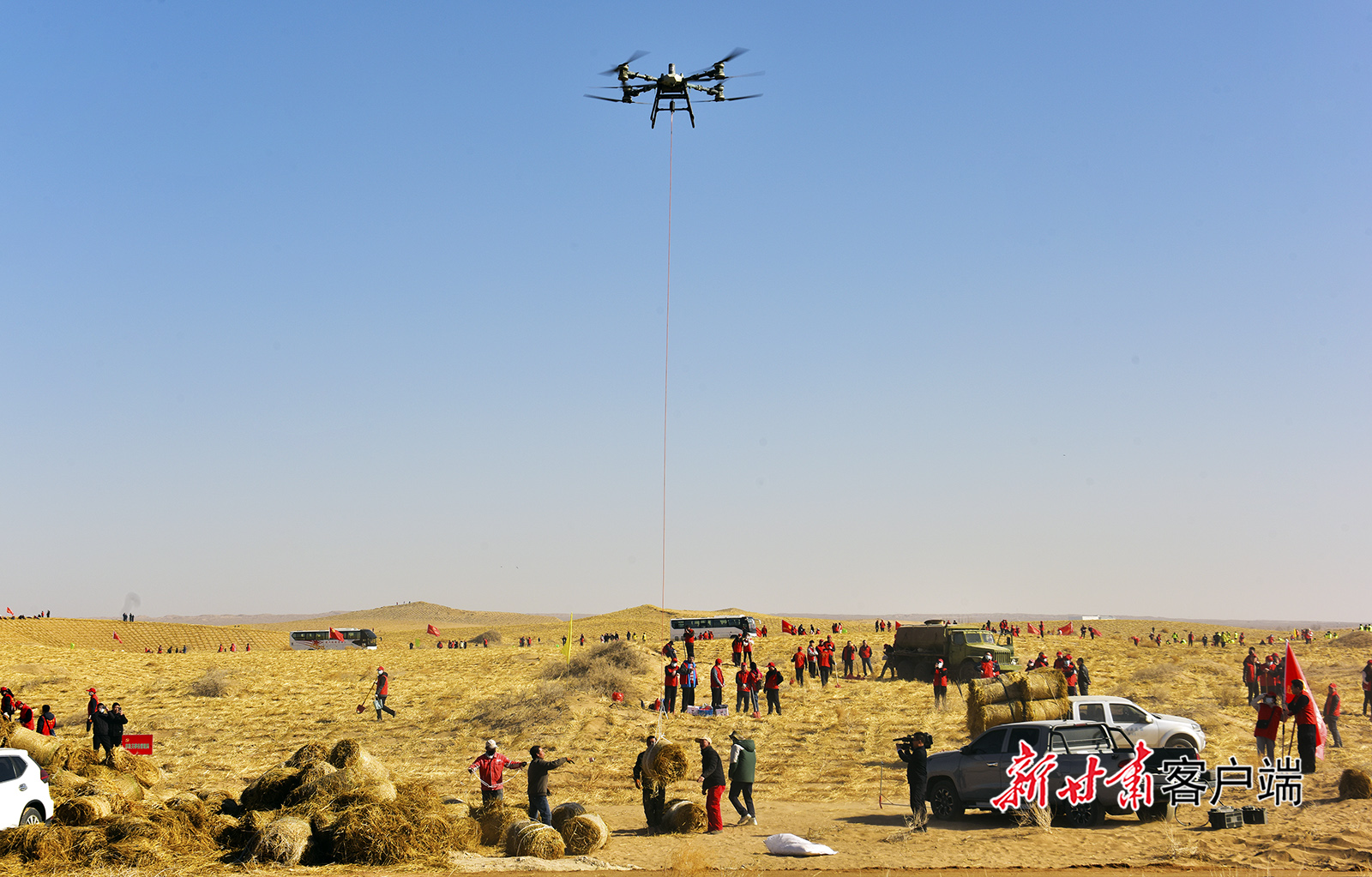 3月9日,武威市及民勤县7000余名干部、群众齐聚民勤县时光廊道,开展义务压沙植树活动,以实际行动守护西部生态安全屏障。新甘肃·甘肃日报通讯员 张文灿 李军 梁俊秀