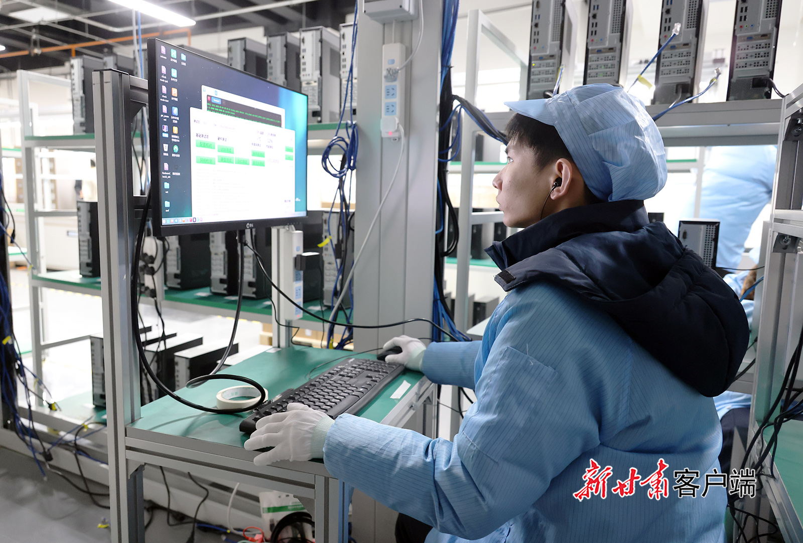 近日,位于庆阳市西峰区的甘肃诚龙信息科技有限公司生产车间内,工人加紧组装、检测零部件,一批计算机整机经包装后即将发往成都。