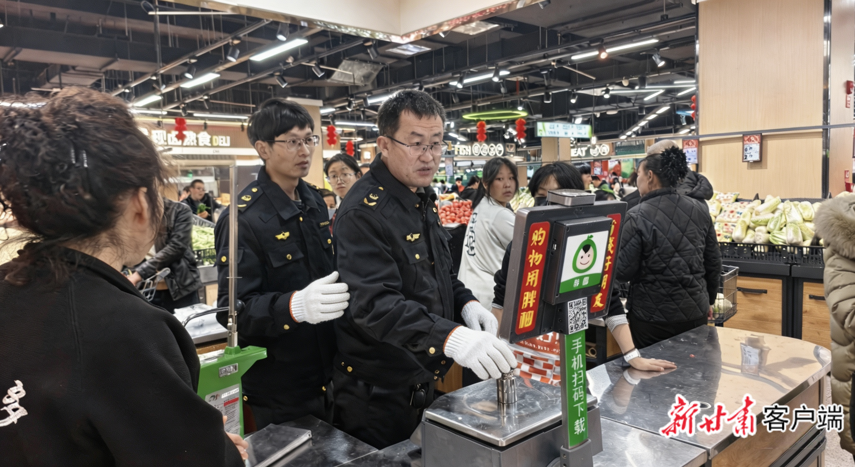 市场监管工作人员对商场超市进行检查。