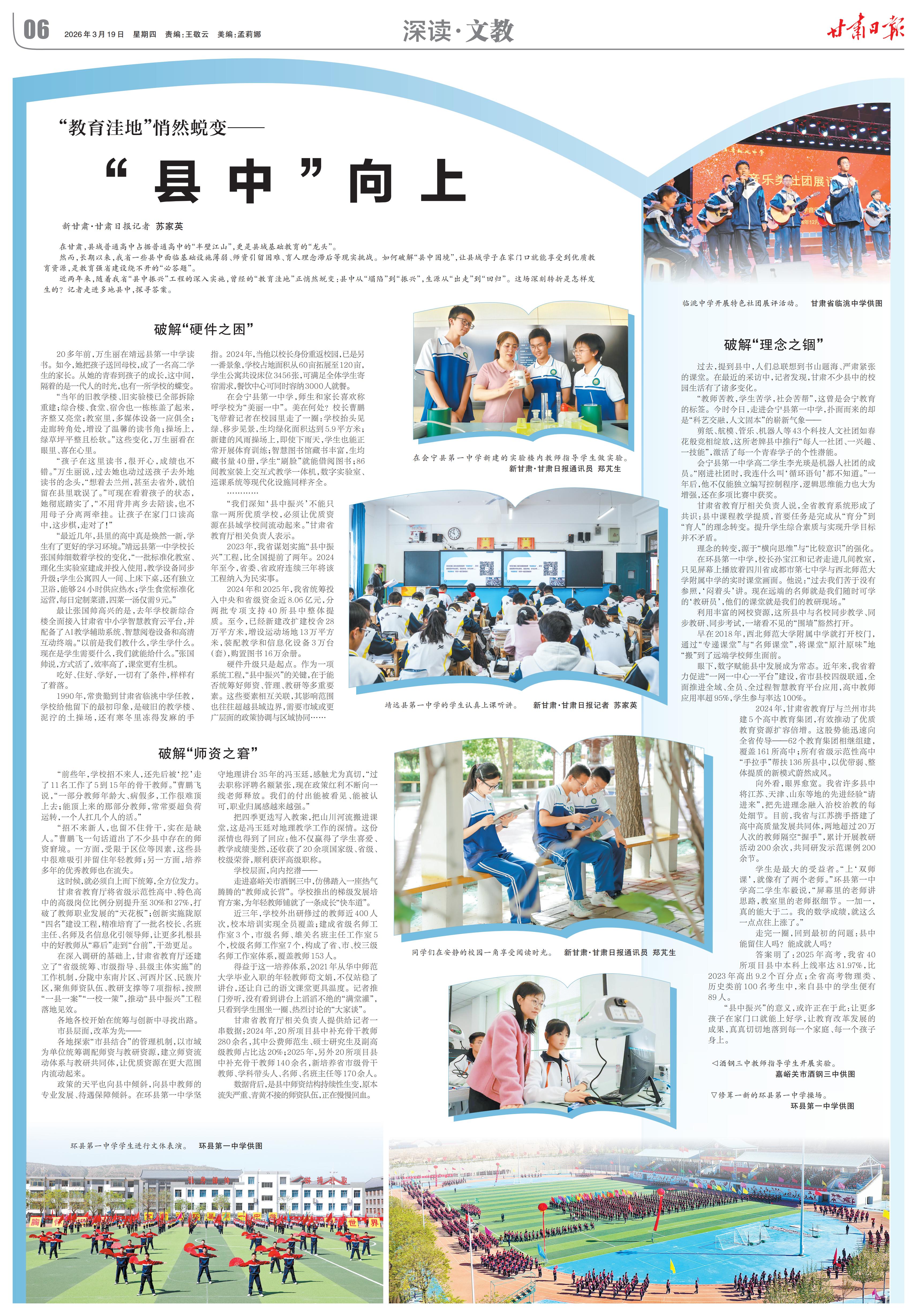 在甘肃,县域普通高中占据普通高中的“半壁江山”,更是县域基础教育的“龙头”。