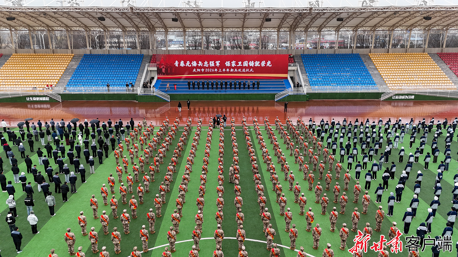 3月13日,庆阳市2026年度新兵欢送仪式在庆阳职业技术学院举行。一批陇原优秀儿女怀揣着建功立业的青春梦想,肩负着全市父老乡亲的殷切嘱托,即将陆续启程奔赴军营。新甘肃·甘肃日报通讯员 俄少飞