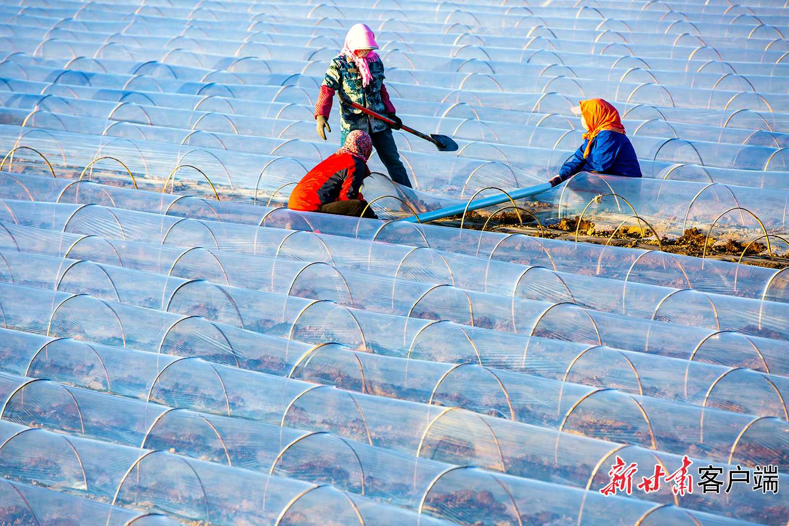 3月11日,张掖市甘州区长安镇洪信村千亩蔬菜基地,菜农正给种植的青笋、菠菜搭建小拱棚。甘州区针对春季多风、昼夜温差大的特点,广泛推行小拱棚蔬菜种植技术,达到抗寒、防风、保温、节水功效,确保早春蔬菜丰产增收。新甘肃·甘肃日报通讯 杨永伟