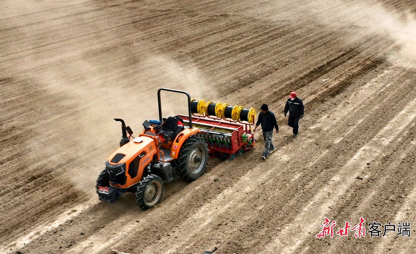 3月12日,高台县巷道镇殷家桥村绿色高产小麦种植基地,农户使用北斗导航自动驾驶拖拉机牵引的播种、施肥、滴灌带铺设一体机,进行春小麦播种。新甘肃·甘肃日报通讯员 王将 陈 海