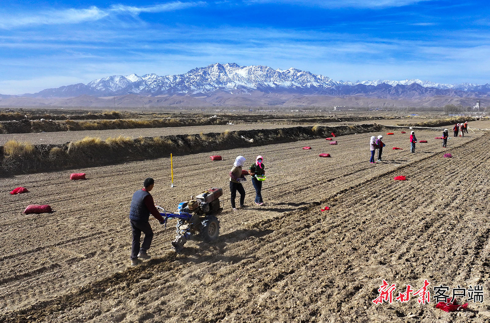 3月11日,民乐县洪水镇刘山村千亩紫皮大蒜种植基地,蒜农们抢抓农时种植紫皮大蒜。近年来,该县推动紫皮大蒜种植向规模化、科学化、产业化方向发展,目前全县紫皮大蒜种植面积常年稳定在3万亩左右。新甘肃·甘肃日报通讯员 王晓泾 杨玉红