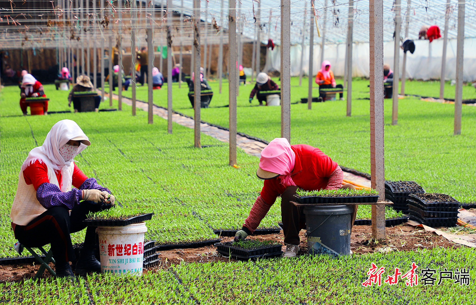 3月15日,张掖市甘州区党寨镇陈寨村育苗大棚内,工人正在开展辣椒间苗工作,为后续辣椒定植、高产打下坚实基础。新甘肃·甘肃日报通讯员 李自海