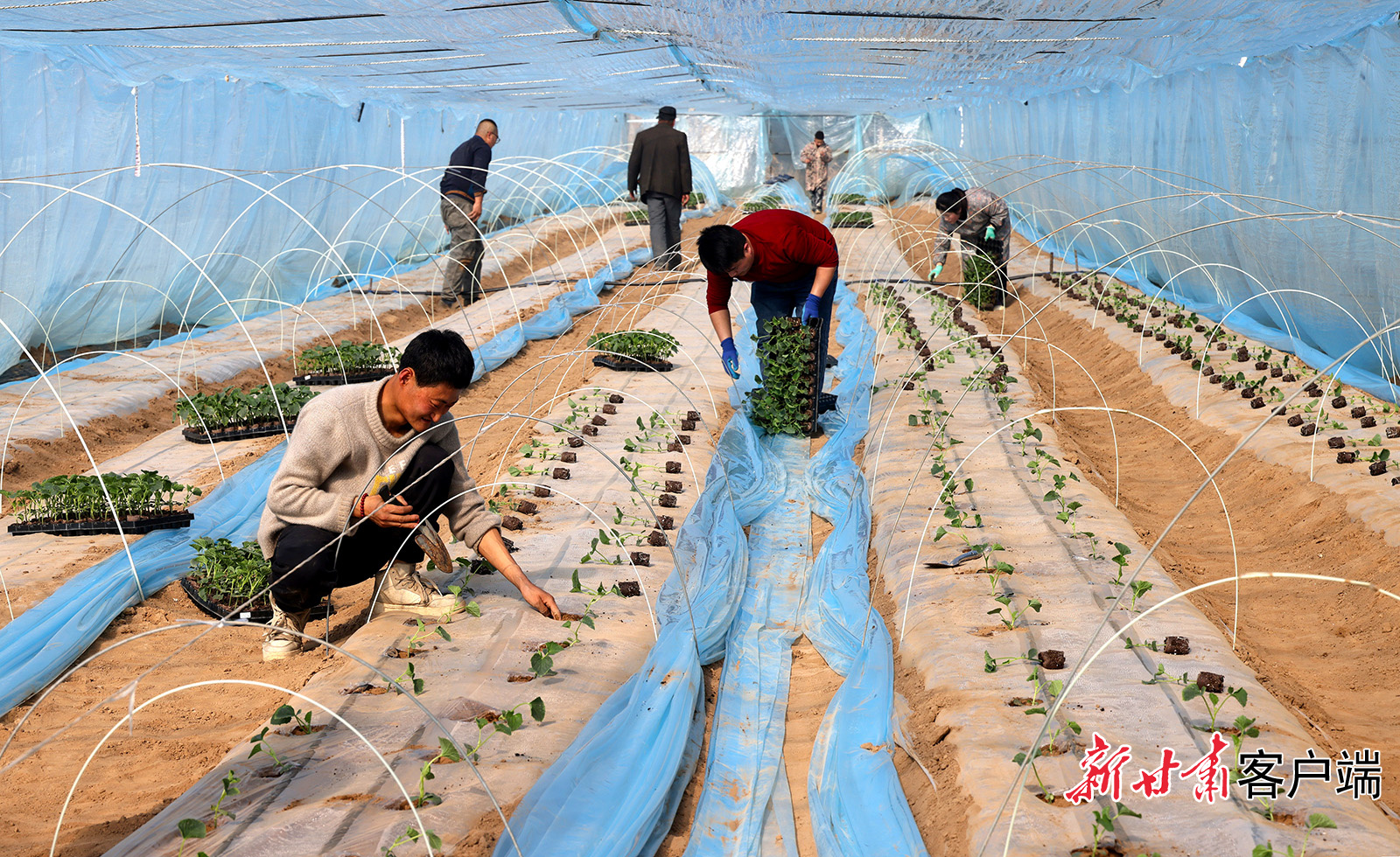 早春时节,在西峰区什社乡武川村甜瓜基地,瓜农们抢抓农时定植甜瓜苗。近年,该村推行“合作社+基地+农户”的发展模式,村办合作社带动近70户村民发展甜瓜种植,今年全村计划种植大棚甜瓜300多棚。新甘肃·甘肃日报通讯员 盘小美