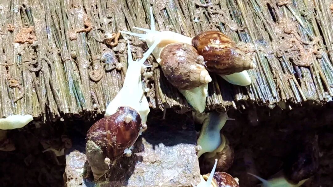 走进恒温大棚,潮湿温热的空气与室外形成鲜明的对比,一万多只白玉蜗牛在其中产卵和进食。白玉蜗牛是非洲大蜗牛的亚种,成年白玉蜗牛可以生长到30至40克,体型大,蛋白含量高,脂肪和胆固醇含量极低,近年来成为风靡全球餐桌的一道美味,同时,蜗牛原液还可以成为化妆品的原材料,有较高的产品附加值。人工养殖的白玉蜗牛只要温度、湿度适宜,一年四季均可繁殖,出壳6个月后便可以发育成熟,交配受精后15-20天即可产卵,一次产卵数量200-500枚。