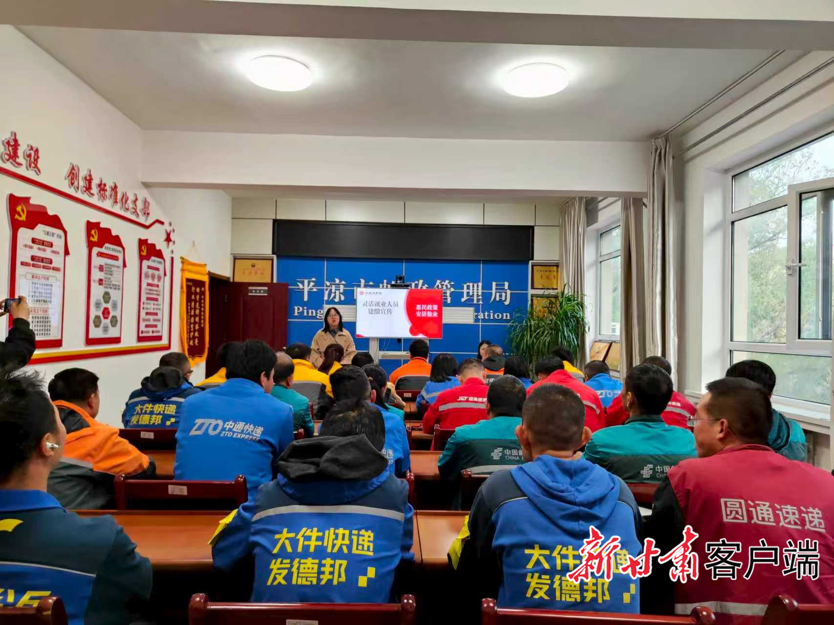 为快递员宣讲政策。