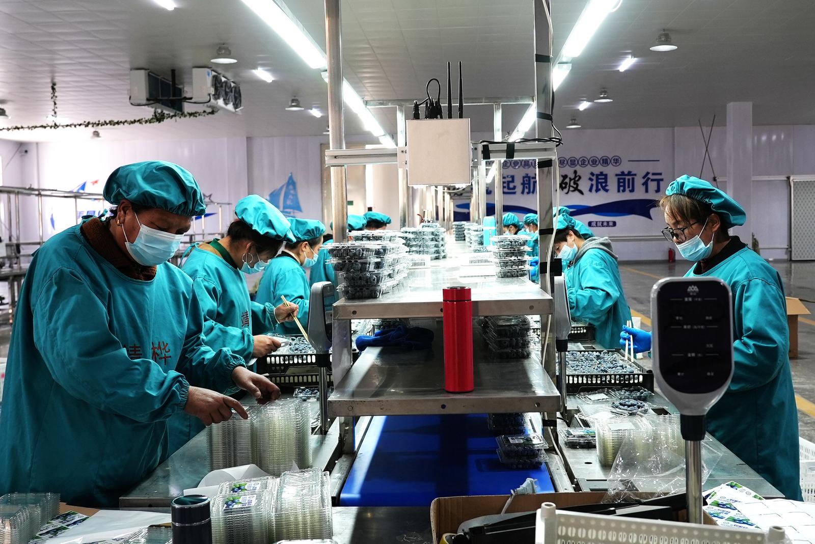 时至中午,甘肃靖桦生态农业科技有限公司加工车间内,工人们正在将新鲜采摘的蓝莓按果型大小分类包装,放入印有“刘家峡蓝莓”品牌标识的包装盒中。目前,上市的蓝莓在兰州、西宁等周边市场,供不应求,反馈良好。