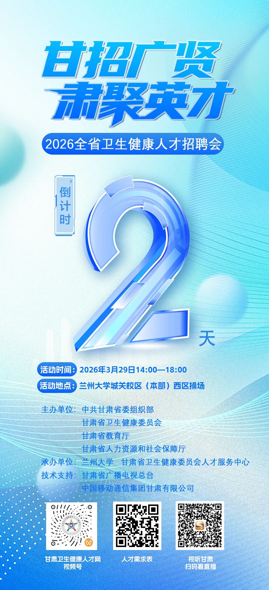 【微海报】倒计时2天!3月29日,2026年甘肃省卫生健康人才招聘会将在兰州大学举办!