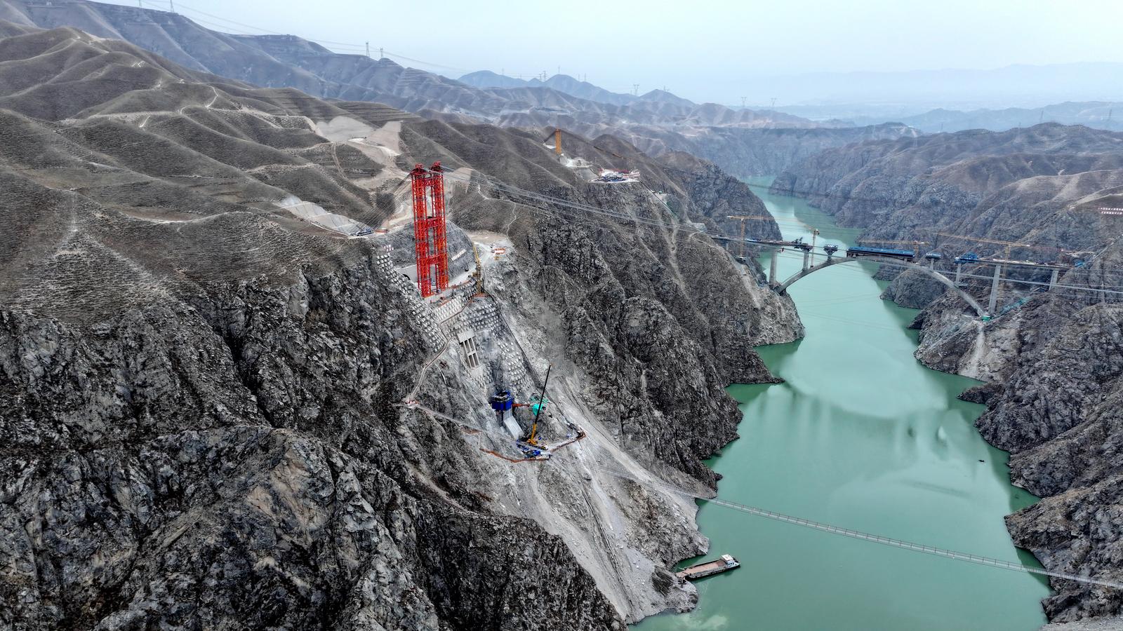 中铁二十局集团兰永临高速项目部总工程师 穆显亮:我标段线路全长10.67公里,截至目前,实现投资过半目标,路基土石方填筑完成量突破千万立方米,辛家隧道已于去年十二月顺利实现全线贯通。作为全线关键性控制工程,洮河特大桥建设正稳步推进,全力冲刺主拱合龙的节点目标。
