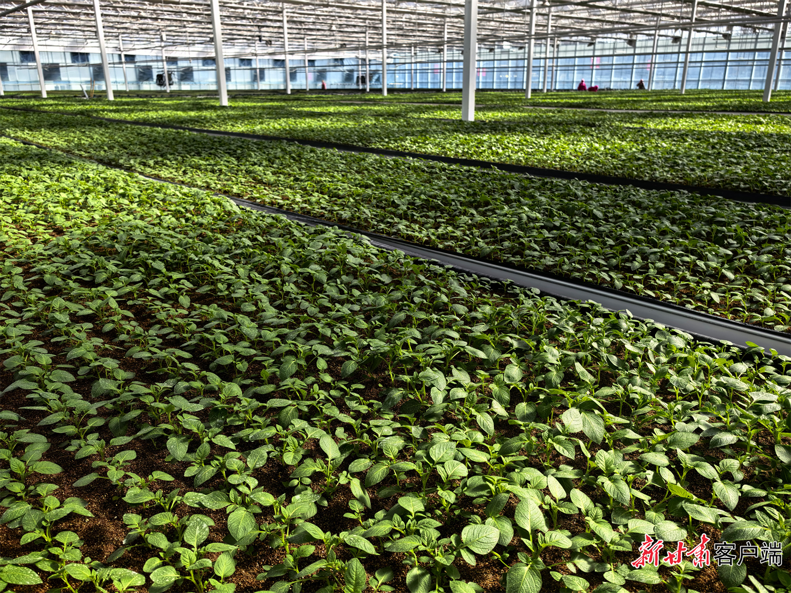 春雨润泽渭源。时下,甘肃省农业科学院会川试验站的温室里暖意融融,一派生机勃勃的景象。俯身细看,一株株脱毒薯苗顶着晶莹露珠,叶片翠绿鲜亮,长势格外喜人。工人们弯腰穿梭,指尖轻扶薯苗栽到苗床上,动作麻利娴熟,温室里满是忙碌的劳作声响,温润的空气与薯苗的青涩气息扑面而来。