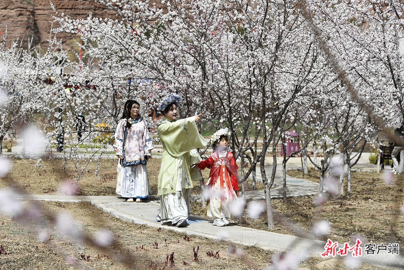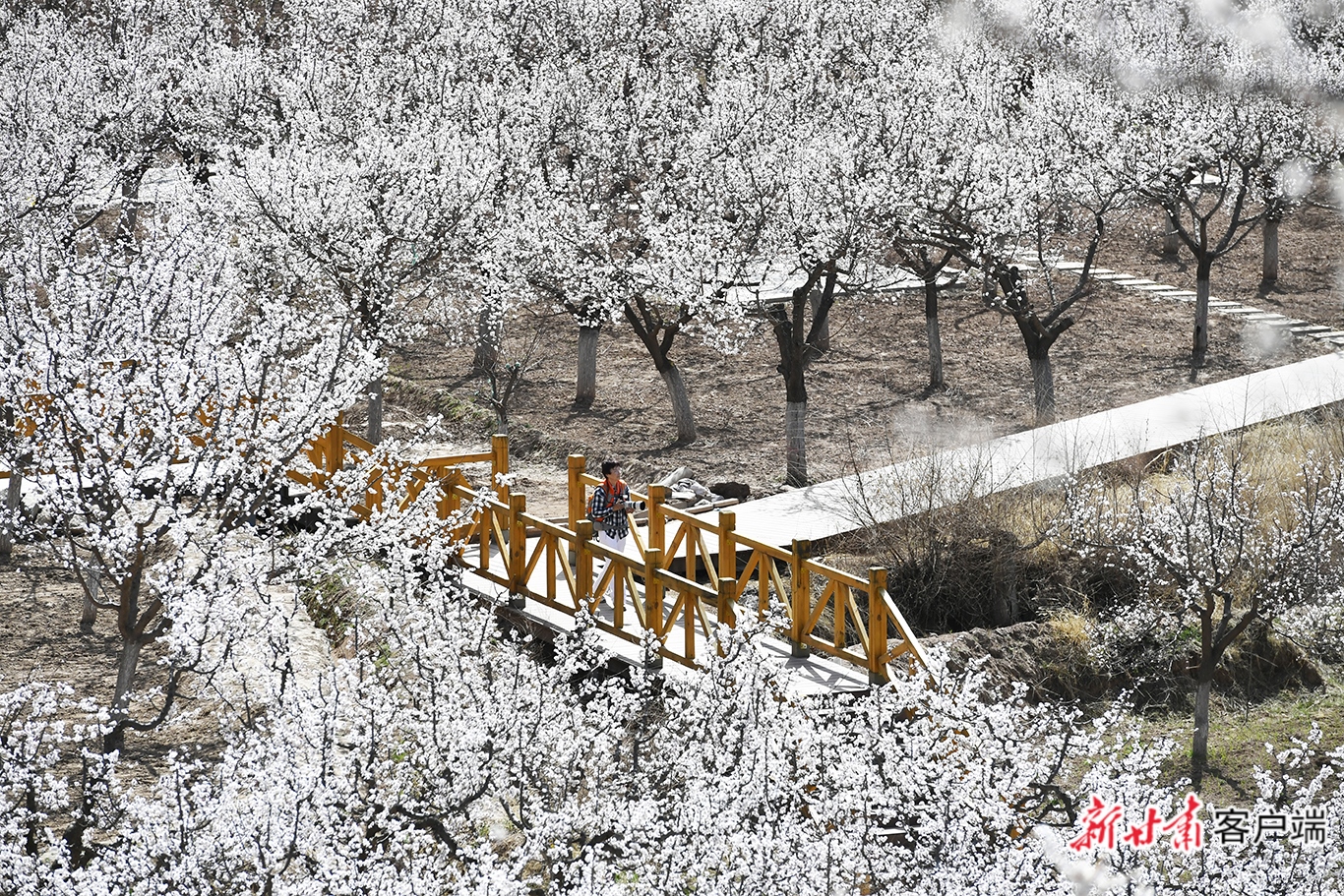 4月3日,东乡县唐汪镇万亩杏花盛开,吸引不少游客走进杏园踏青赏花,尽享春日美景。