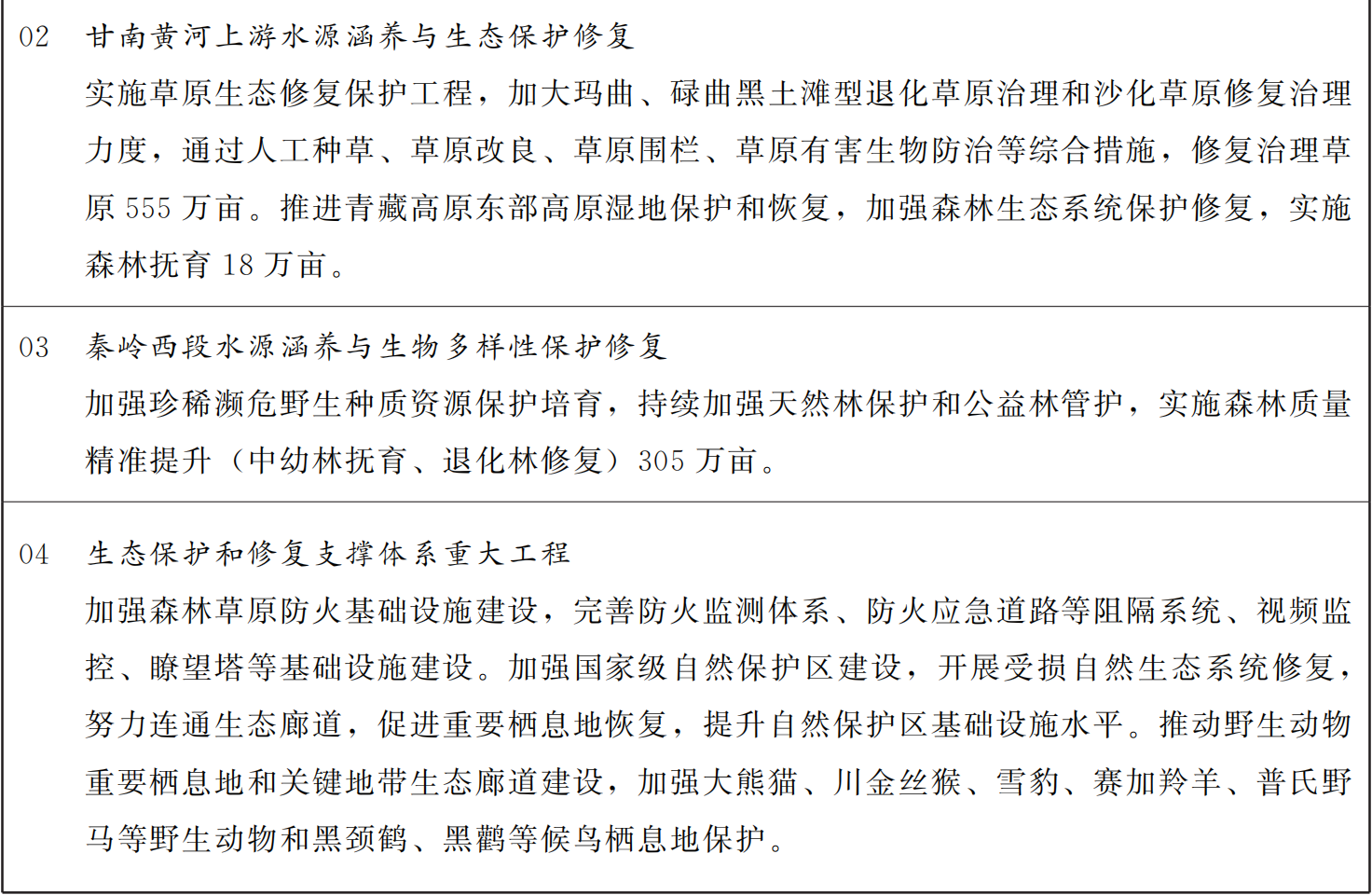 以国家重点生态功能区、生态保护红线、自然保护地等为重点,加快实施重要生态系统保护和修复重大工程,持续提升生态系统多样性、稳定性、持续性。