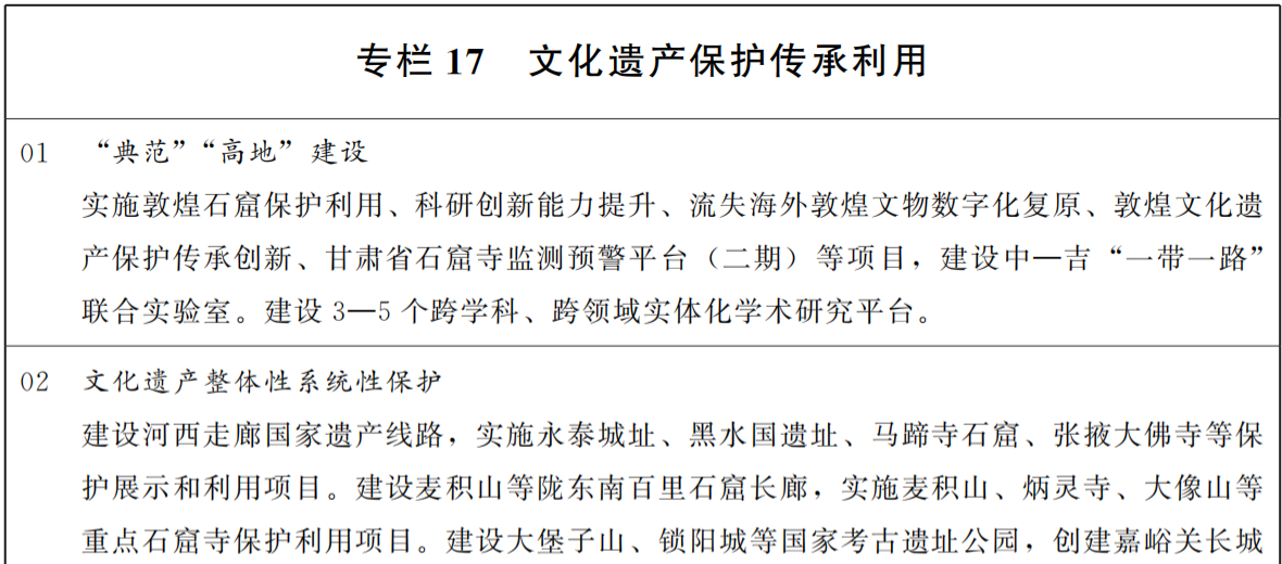 社会文明程度展现新风貌。社会主义核心价值观更加深入人心,“诚信甘肃”建设有序推进,全民思想道德素质、科学文化素质、健康素质明显提高。兰州市、金昌市、嘉峪关市蝉联“全国文明城市”荣誉称号,肃南县、崇信县、玉门市、敦煌市、永靖县创建为“全国文明城市”。文化保护传承创新发展,敦煌研究院“典范”“高地”加快建设,长城、长征、黄河国家文化公园建设取得积极进展,中华文明“探源工程”、考古中国、河西走廊国家遗产线路建设扎实推进,综合性文化服务中心实现行政村全覆盖,公共文化服务体系不断健全,人民精神文化生活日益丰富。