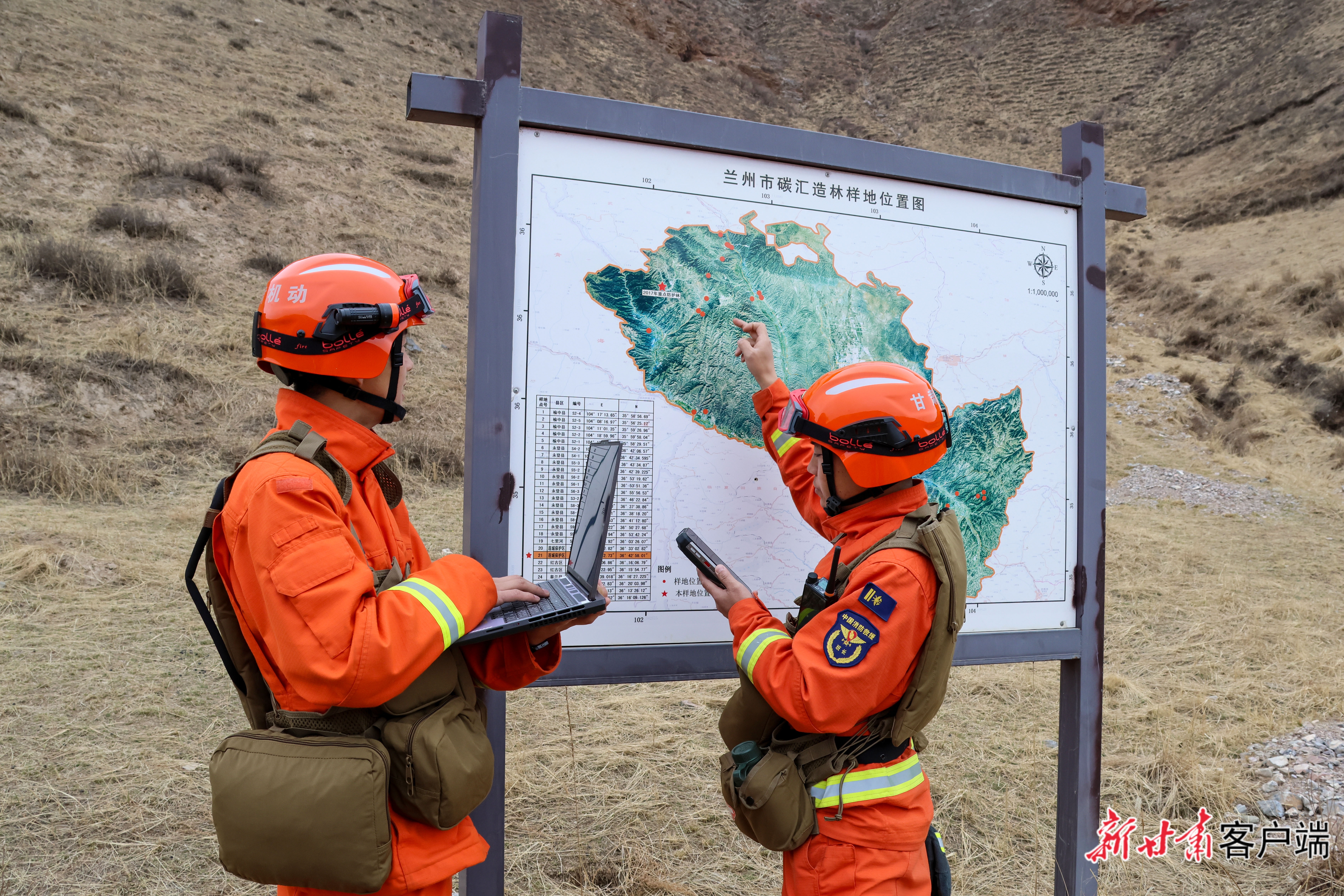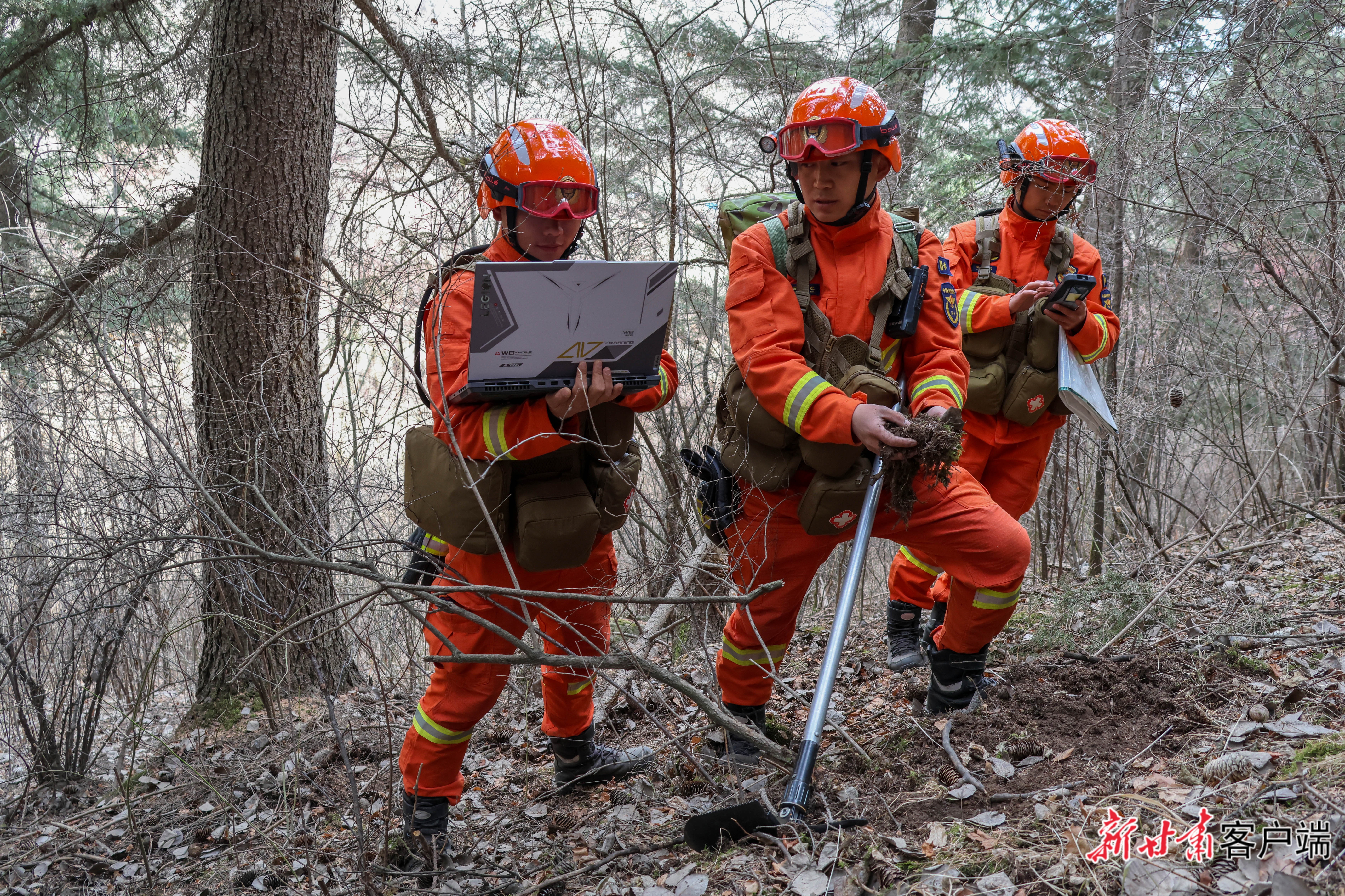 消防指战员在林区重点位置采集信息。(本文图片均由甘肃消防救援机动总队兰州支队提供)