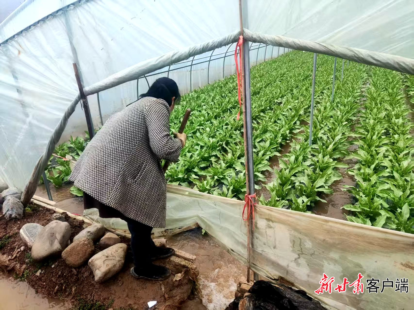 天水市武山县鸳鸯镇村民正在灌溉大棚蔬菜。