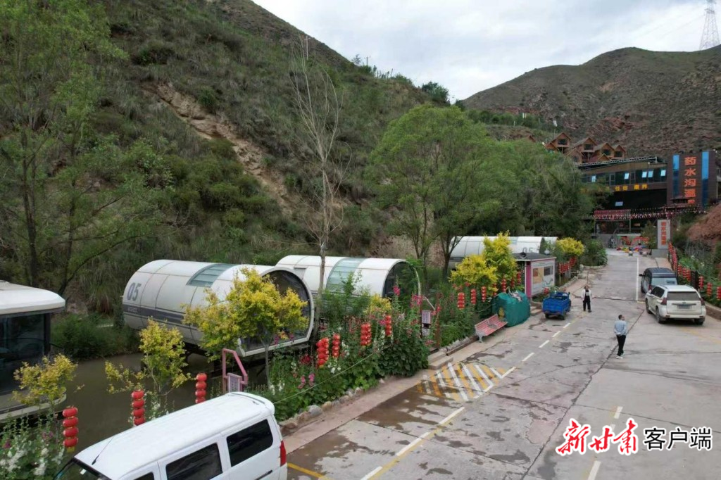 药水沟项目区涉及河桥镇蒋家坪村、七里村2个行政村,总面积26.12平方公里,曾有16.07平方公里存在严重水土流失,沟道淤积、植被稀疏,生态脆弱且制约着群众增收。经多年系统治理,工程与植物措施协同发力,区域形成林草覆盖、沟道通畅、梯田连片的生态格局,植被覆盖度大幅提升,叠加天然温泉资源优势,为生态价值转化奠定坚实基础。