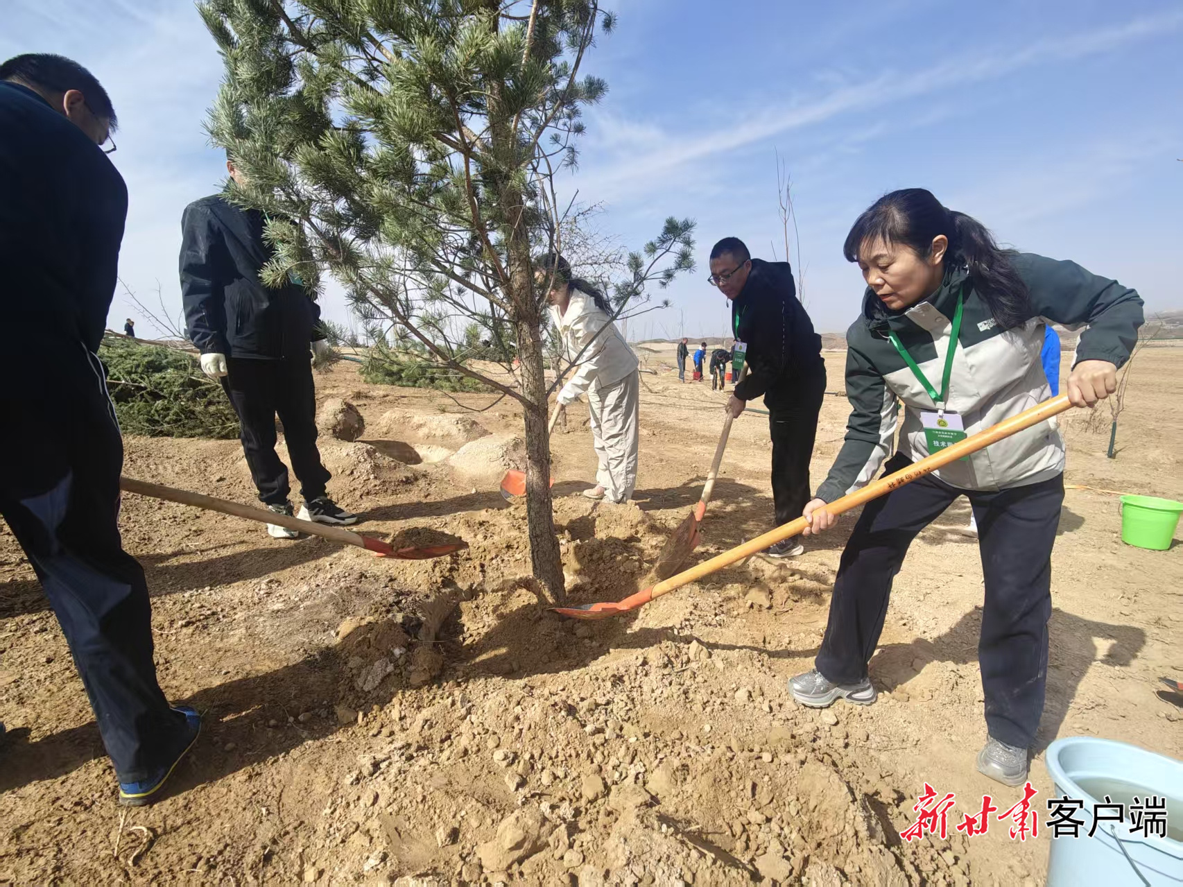 4月10日上午,兰州新区义务植树现场一派热火朝天的景象。大家三五成群、相互协作,扶苗对齐、挥锹填土,动作熟练有序。