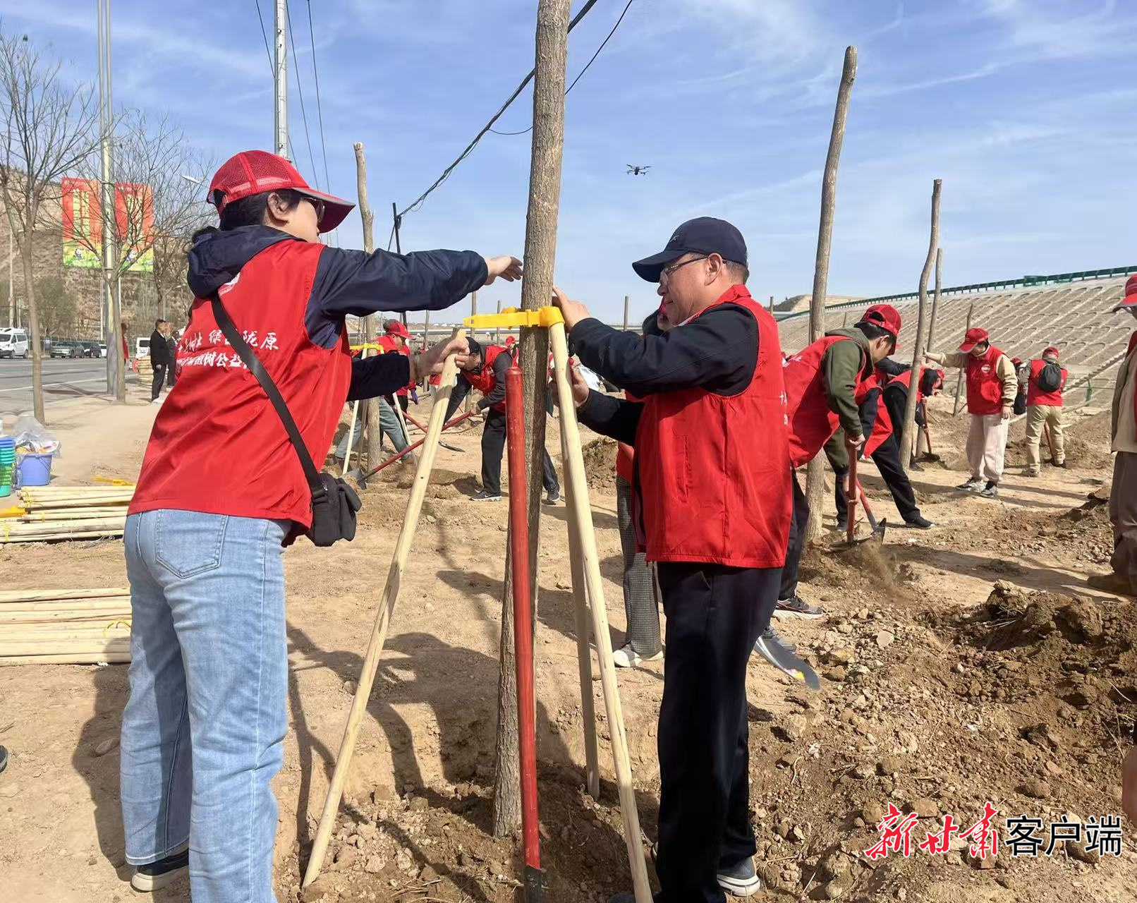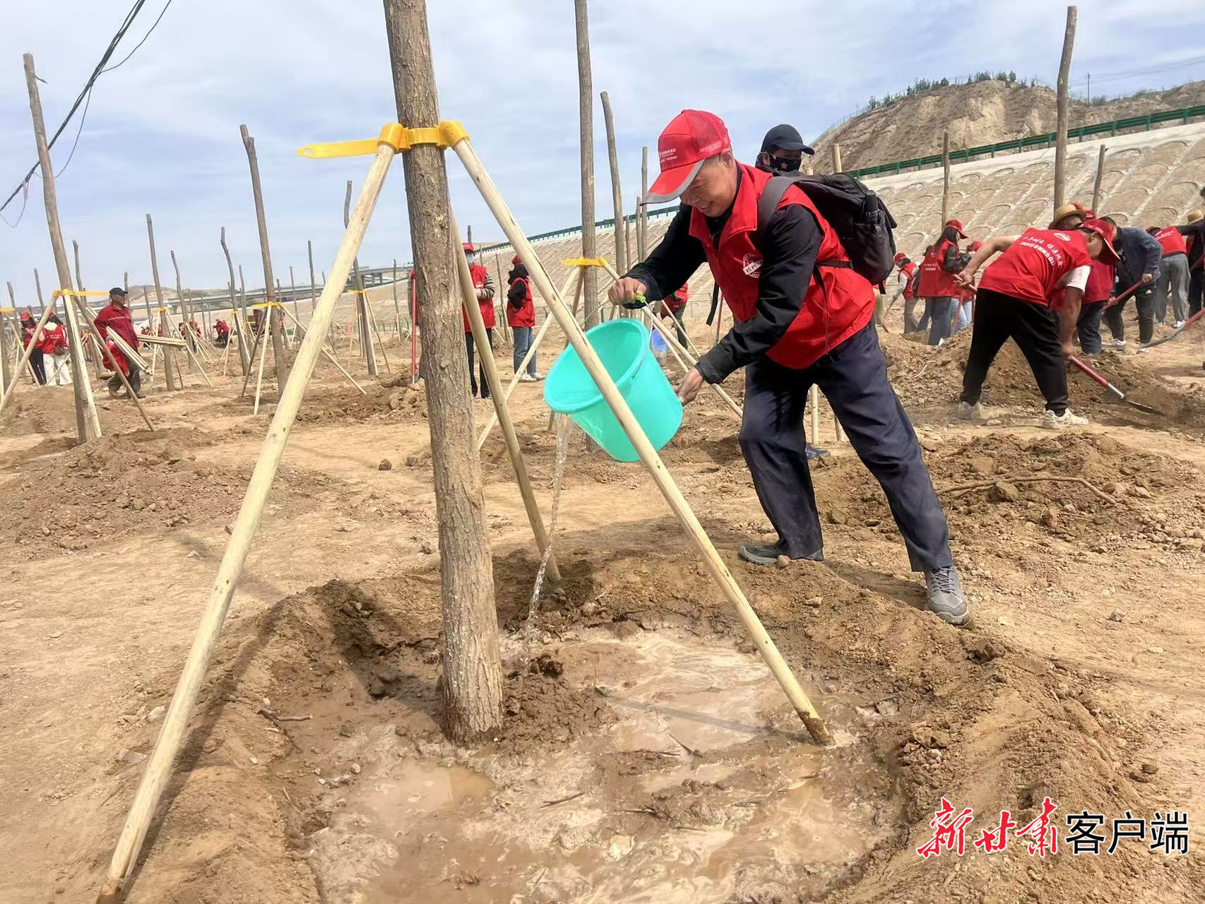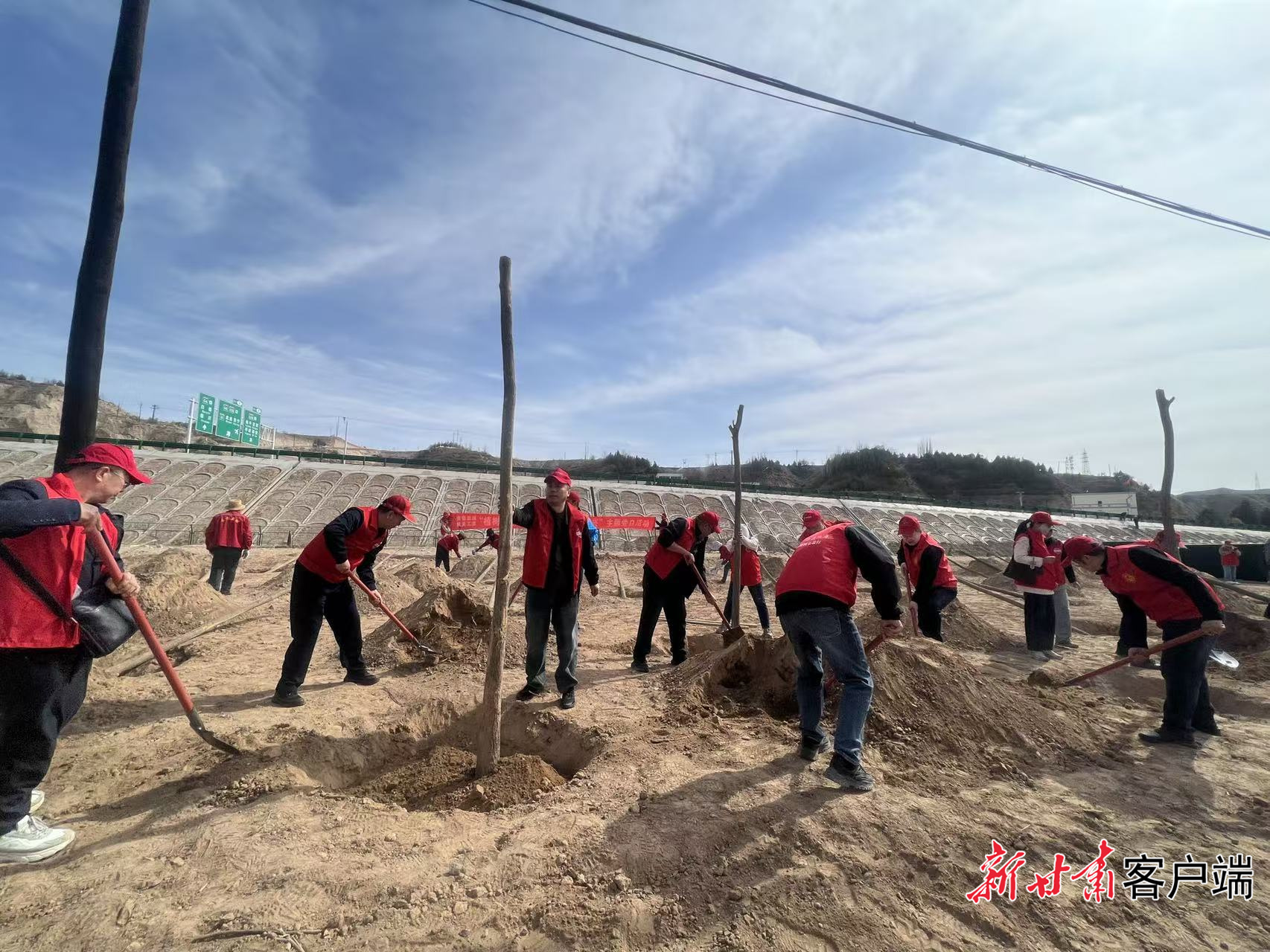 植树活动现场热火朝天。本文图片均由新甘肃·甘肃日报记者 王思璇 摄