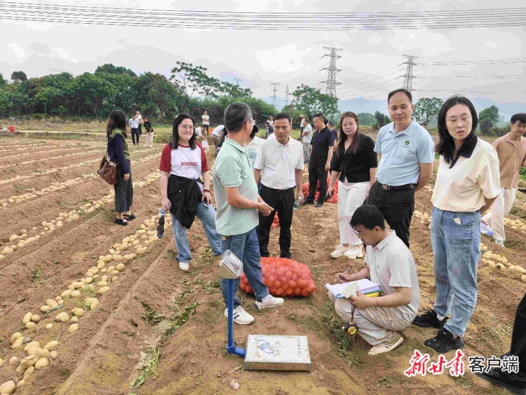 新甘肃客户端广东4月11日讯(新甘肃·甘肃日报记者 冯宝强)今天,广东省阳江市阳东区塘坪镇长乐村的冬作马铃薯田间,一场别开生面的测产观摩会吸引了粤甘两省农业专家、企业代表和种植大户的目光。由甘肃农业大学培育的加工型马铃薯新品种“甘农薯7号”,在南方冬作区交出了一份亮眼“成绩单”:平均亩产达3134.01公斤,较当地传统主栽品种增产超800斤。这标志着“北繁南种”协同创新模式取得重要突破,为我国南方冬作马铃薯产业升级提供了强劲的品种动力。