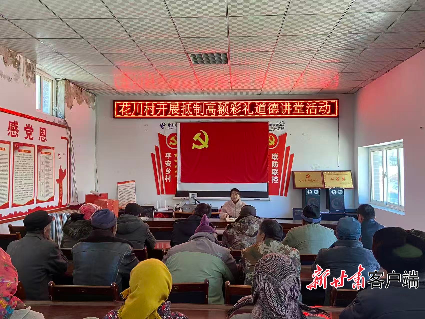 定西市安定区李家堡镇花川村开展抵制高额彩礼道德讲堂活动。