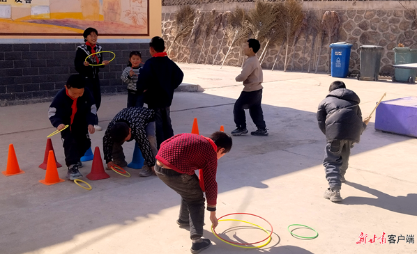 孩子们在新学校快乐玩耍。图片由崆峒区上杨乡政府提供